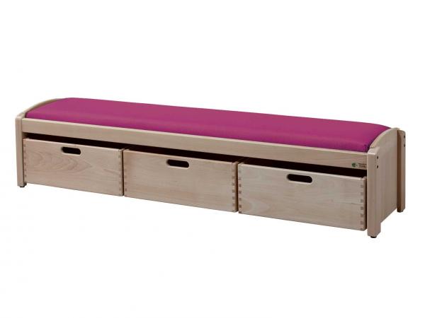 - Banquette en bois + 3 bacs de rangement sur roulettes