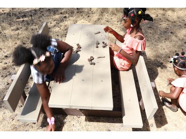 - Table de pique-nique avec 2 bancs, en plastique recyclé PE.