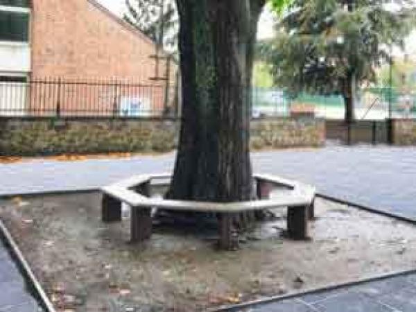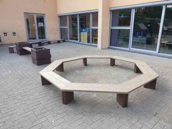 - Banc octogonal est pratique pour mettre plusieurs enfants assis dans une cours d'école. Il aménage votre cours et protège vos arbres.
