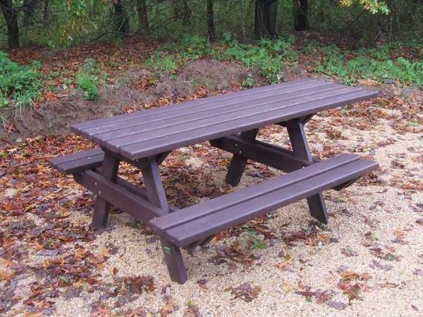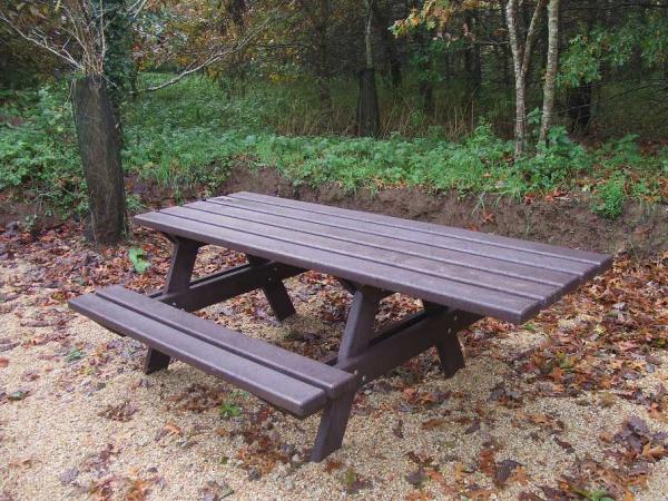 - Table de pique nique réalisée exclusivement en matériaux recyclés