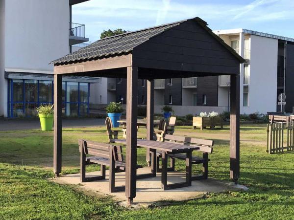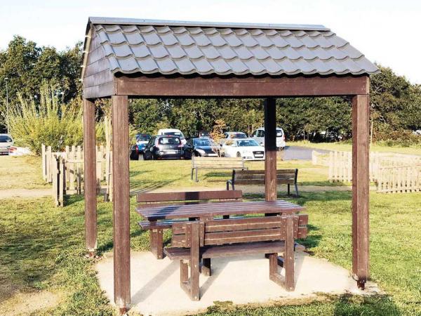 Idéal pour une aire d'autoroute ou au sein d'un Ehpad pour créer un espace d'ombre, cet abri de table est assez grand pour y installer une table pique-nique ou des bancs.