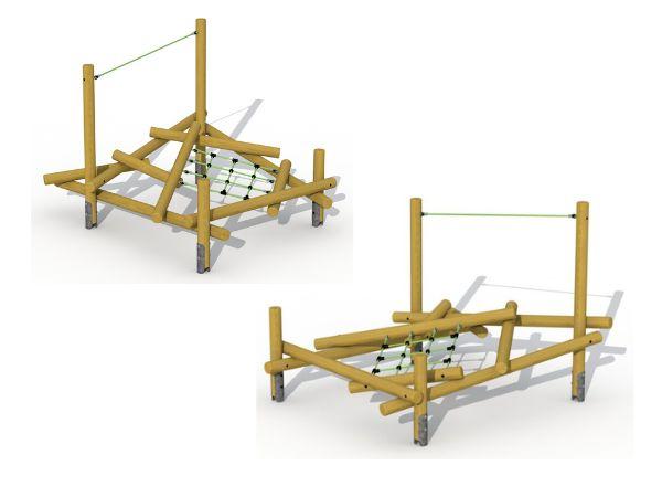 Jeu d'équilibre en rondin et cordage