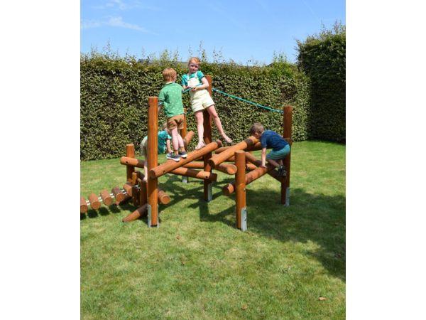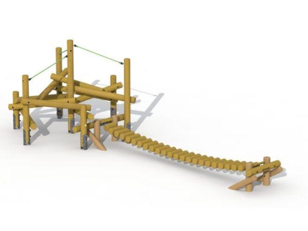Jeu d'équilibre en rondin, cordes et pont souple
