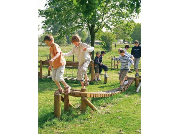 Le jeu est composé d'un pont qui vacille à du câble en acier. Ce câble est attaché à de petits rondins verticaux en chêne qui sont placé dans le sol.