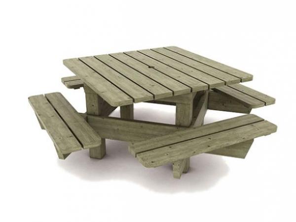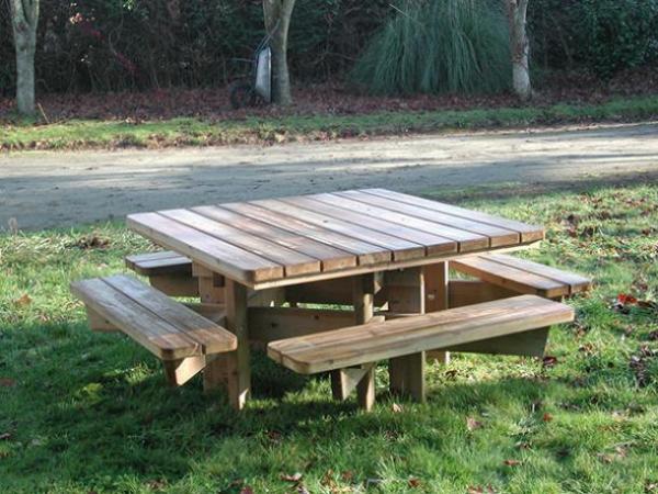 - Grande table de pique-nique carrée 8 places avec 4 banquettes intégrées