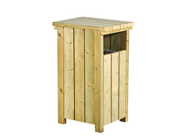 - Corbeille rectangulaire en bois avec une double ouverture frontale et un fond pour maintenir le sac et empêcher l'accès aux rongeurs