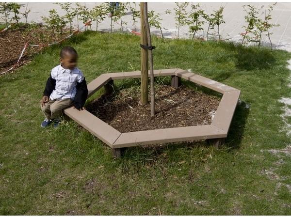 - Banc contour d'arbre en plastique recyclé de forme hexagonal