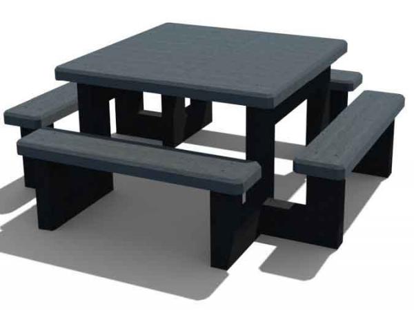 - Table pique-nique en plastique recyclé carré avec 4 banquettes pour crèche