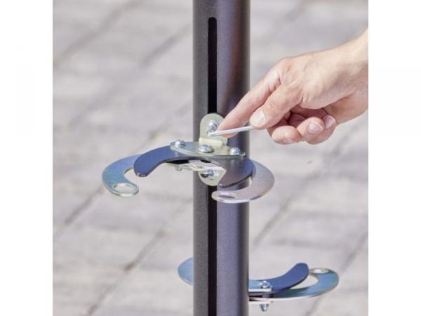 Pinces antivol sont réglables en continu de 37 à 69 cm de haut pour tout type de trottinette et pour permettre à la batterie d'être au dessus ou en dessous de la pince (pour trottinettes électriques)