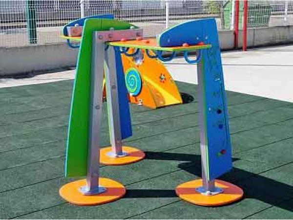 - Idéale pour apprendre aux enfants à se balancer en toute sécurité. Composé de 8 anses, 1 barre de mesure de hauteur/ toise. 1 jeu « trouve la couleur » en anglais, 1 panneau gravé avec des lettres.