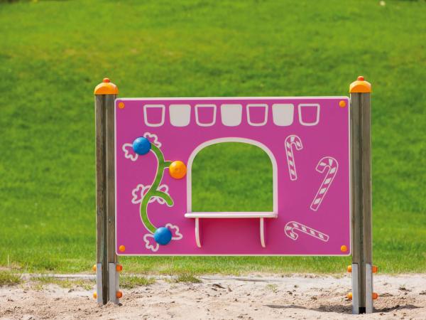 - Ce panneau permet aux enfants d'exprimer leur créativité au travers de petit jeu de rôle sur la boutique à bonbons