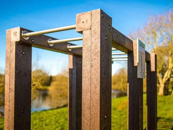 - Principe : suspendez-vous par les bras, levez les pieds et avancez jusqu'au bout du parcours à l'aide uniquement des bras