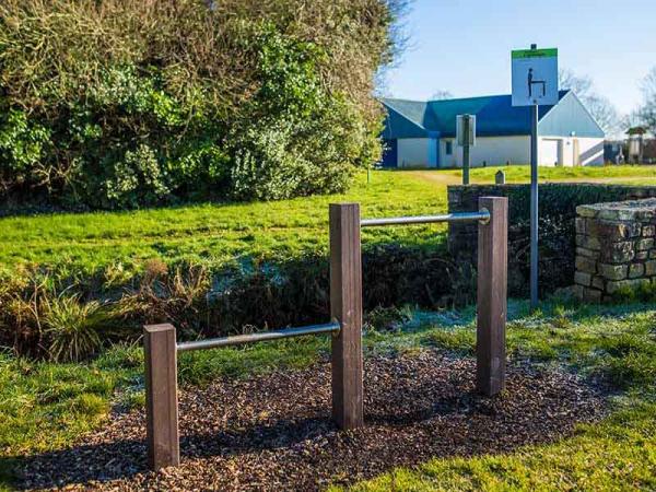 - Principe : étirez-vous les jambes en posant le talon sur la barre d'inox.