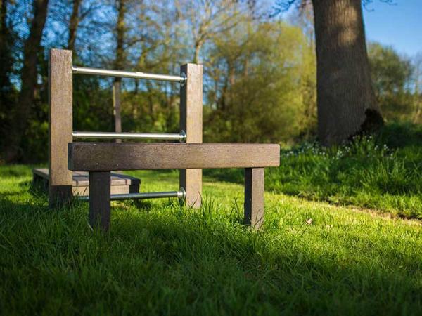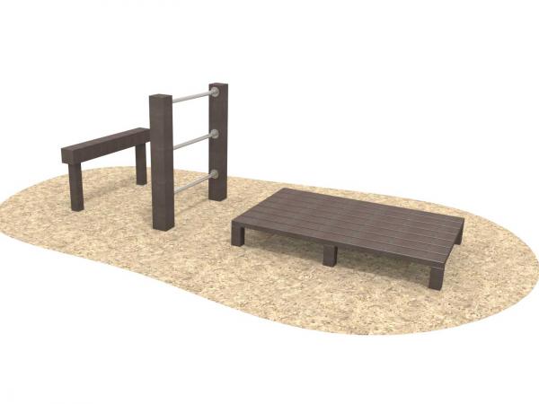 - Espalier en poteaux 120 x 120 mm avec trois tubes en inox brossés avec embases permettant de faire les exercices de torsion.