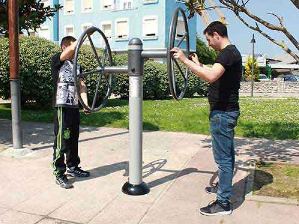 - But : debout prenez une poignée et positionnez vous de coté ou face à la roue et tournez