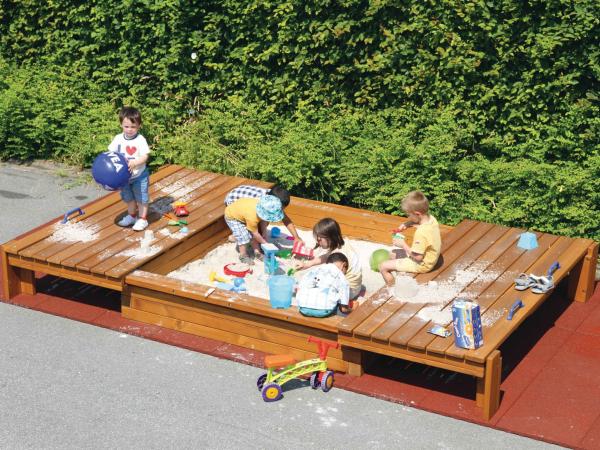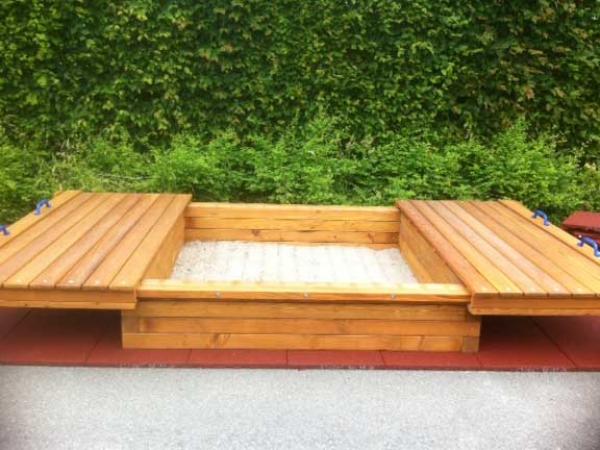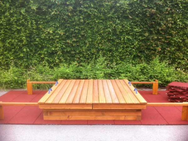 - Bac à sable avec couvercles coulissants, tissus filtre géotextile fourni à placer au fond du bac à sable