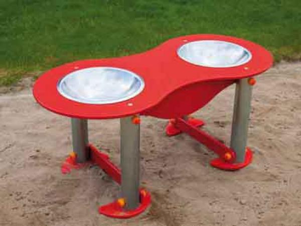 - Table en polyéthylène rouge avec 2 bacs amovibles pour jeux de sable et d'eau