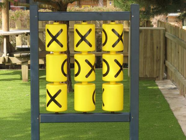- Jeu OXO composé de 9 cylindres tournant sur cadre bois