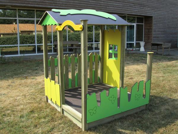 - Cabane semi ouverte sur plancher avec barrière