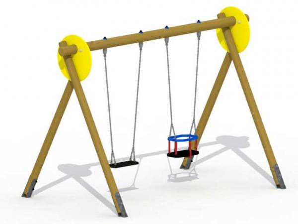 - Portique pour les petits avec pieds croisés et poutre horizontale où sont suspendus 2 sièges bébés