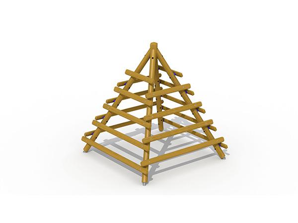- Jeu à grimper en forme de pyramide composé de 18 échelons fixés sur 4 poteaux inclinés