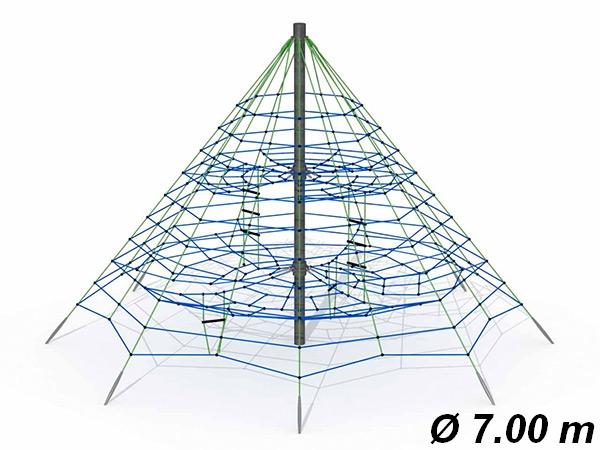 - Pyramide en corde armée Ø 16mm verte et bleue, avec connecteurs en aluminium