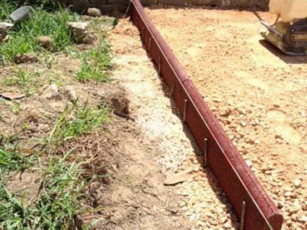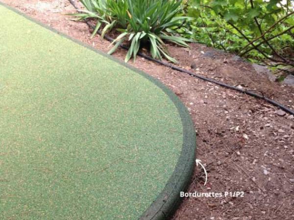 - Bordurette souple réversible en caoutchouc pour le ceinturage de divers espaces (aires de jeux, bac à sable, couloir de saut ...)
