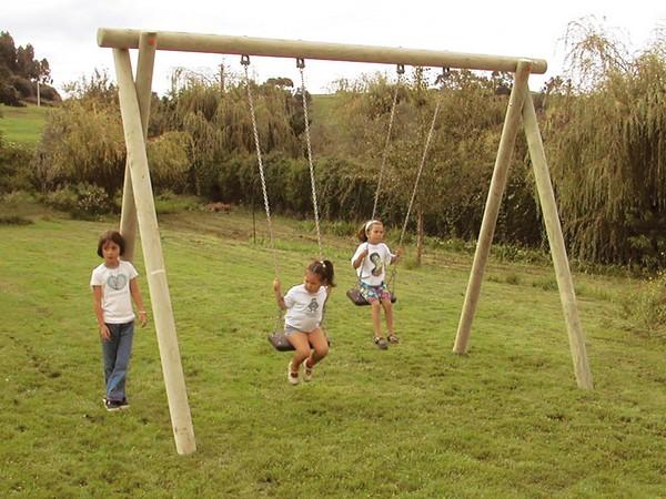 - Ce portique en bois avec 2 sièges plats est conçu avec une esthétique simple et discrète pour s'adapter aux endroits naturels