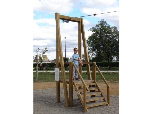 - Tyrolienne complète en bois poteaux carres avec un accès à la plate forme par 1 escalier