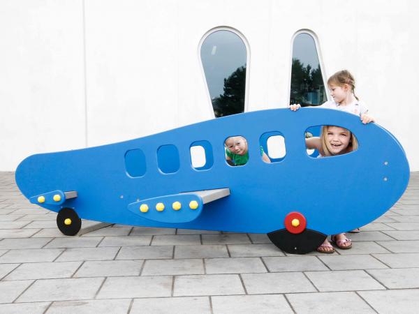 - Avion coloré en plastique recyclé bleu teintés dans la masse