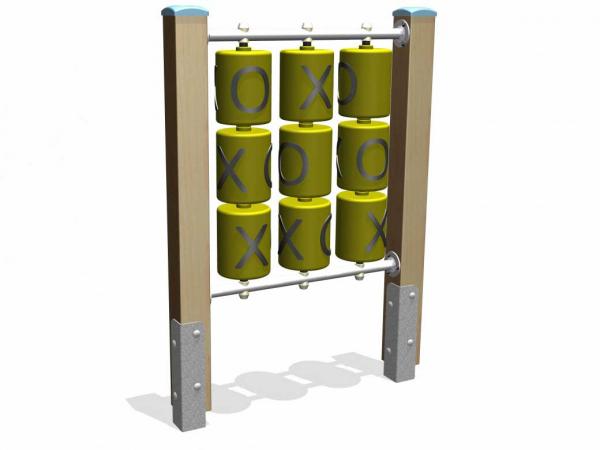 - Jeu type morpion avec croix et ronds sur poteaux en bois lasurés