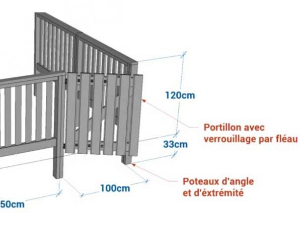 - Dimensions : hauteur hors sol 1,20 m (possibilité de hauteur 1 m hors sol sur demande)