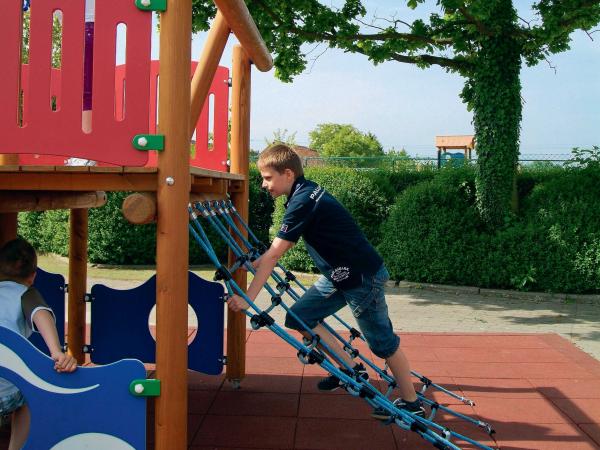 Éléments supplémentaires en option : un arc à grimper, un mur d'escalade, une échelle de singe, un toboggan Inox ou synthétique