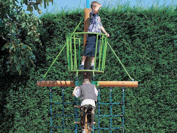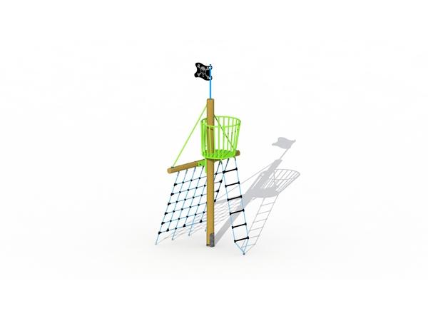 - Nid de corneille avec filet, échelle à grimper et drapeau pirate pour les enfants de 6 à 12 ans.