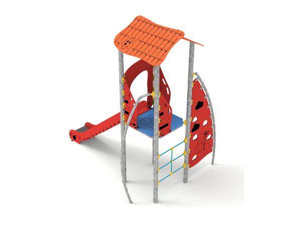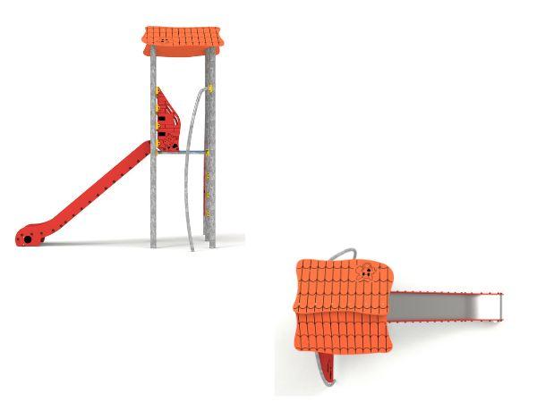 - 1 grande tour de type "grange" couleur brique équipée d'un toboggan