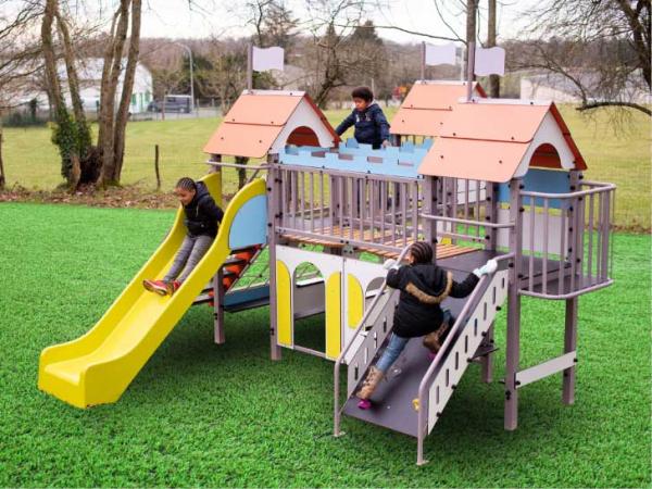 Ces jeux de plein air pour les enfants de 1 à 12 ans permettent d’apprendre à grimper, glisser, se basculer, trouver son équilibre… Tous ces jeux d’extérieur en bois, en acier ou en plastique recyclé présentent des designs originaux de façon à créer des univers ludiques : maisonnettes en forme de champignon, toboggans en forme d’animaux ou en tour de château fort… Ces structures de jeux aux différentes couleurs et formes, s’intègrent dans tout type d’environnement. Elles permettent aux enfants de laisser libre court à leur imagination. Enfin, nos jeux extérieurs sont conformes aux normes de sécurité. Les enfants ont besoin de se dépenser et de s’amuser pour s’éveiller et bien grandir ! C’est pourquoi Acodis propose aux collectivités toute une gamme de jeux d’extérieur pour les cours d’école primaire ou maternelle, pour les crèches ou encore, les aires de jeux dans les parcs. Découvrez différents types de structure pour développer la motricité des tout petits et amuser aussi les plus grands : tourniquets, petits manèges tournants, cabanes, paniers de basket, toboggans, bacs à sable, jeux de bascule, balançoires, jeux sur ressorts, jeux de grimpe, trampolines, pyramide en filet… |