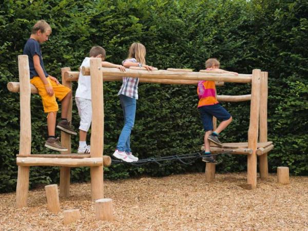 - Les plateformes sont reliées par un pont d'équilibre en corde