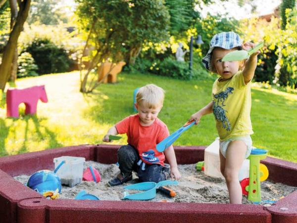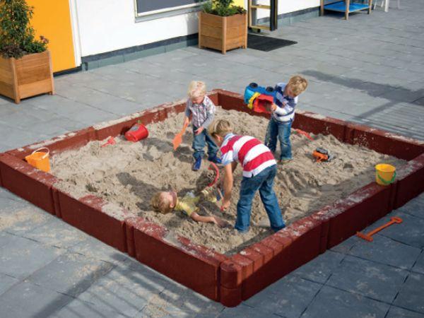 Grâce au système de charnière, on peut choisir soi-même la forme et les dimensions du bac à sable.