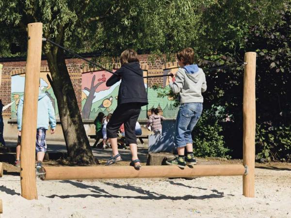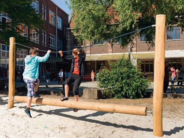 - Rouleau tournant sur lui-même à traverser à l'aide de la corde pour favoriser l'équilibre, la coordination et le contrôle des mouvements