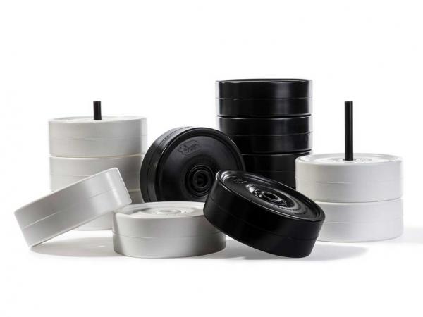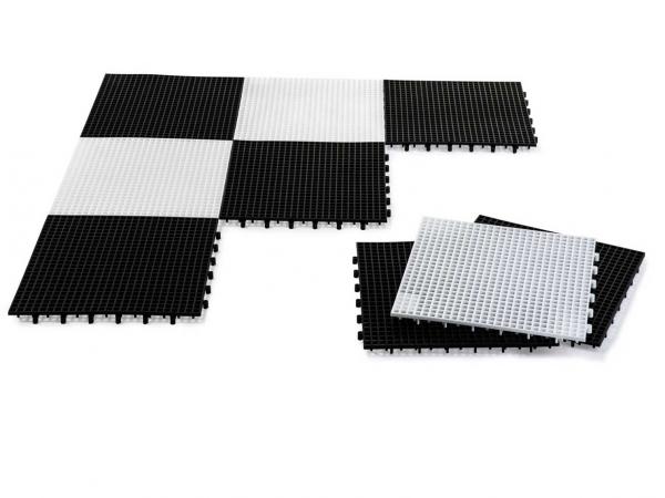 Jeu de dames géant composé de 64 plaques en polyéthylène roto moulé et 24 pions