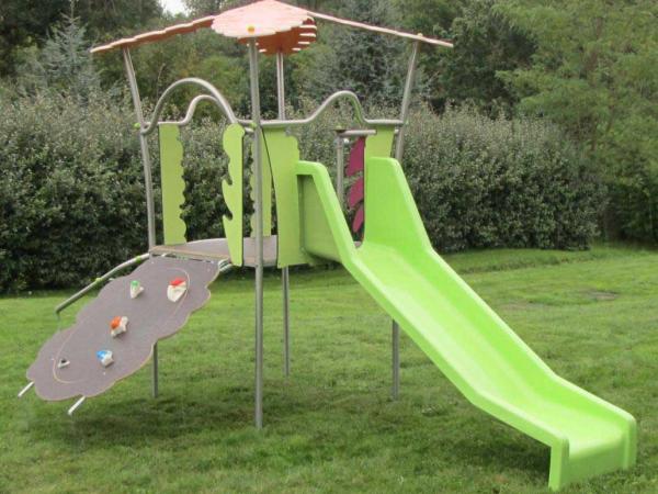 - Structure de jeu équipé d'un mur d'escalade, d'un accès par filet à grimper et un toboggan