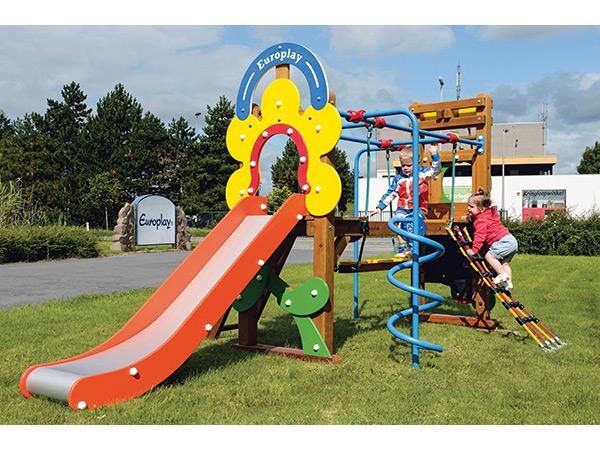 - MATÉRIAUX : . Structure en bois de mélèze et de frêne avec rondins calibrés 90 x 90 mm . Panneaux en polyéthylène .Tuyaux toboggan en inox Ø 48 mm . Pièces métalliques en acier polyester coating . Cordages et filets en polypropylène 16 mm renforcé avec du câble d'acier . Accessoires en matière synthétique . Cache vis anti vandalisme en forme de fleur en plastique