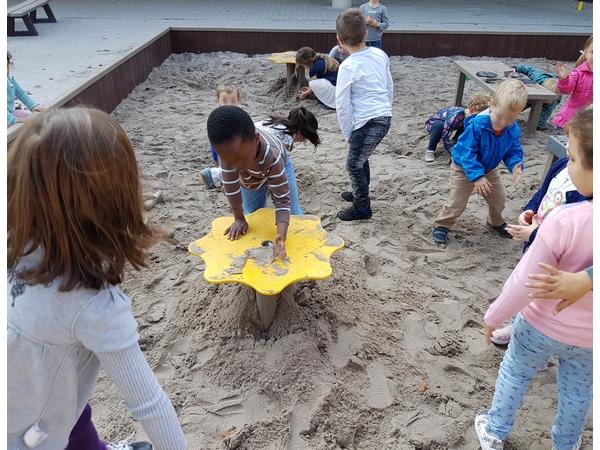 - Table pour jouer dans le sable pourvue d'un trou pour l'installation d'un parasol Ø 45 à 48 mm