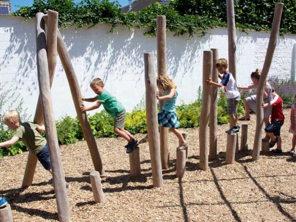 - Parcours d'équilibre composé de 15 poteaux conçu intégralement en robinier