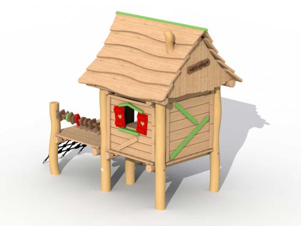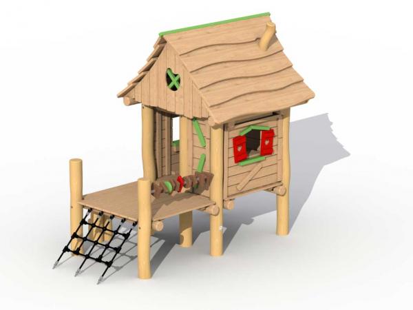 - Maison surélevé accessible par d'un filet d'escalade et des pas rondins