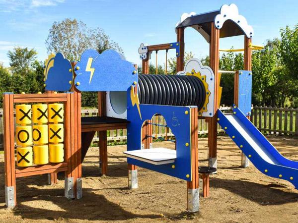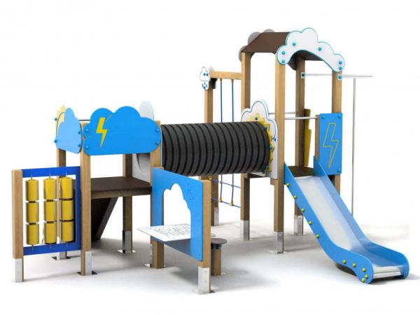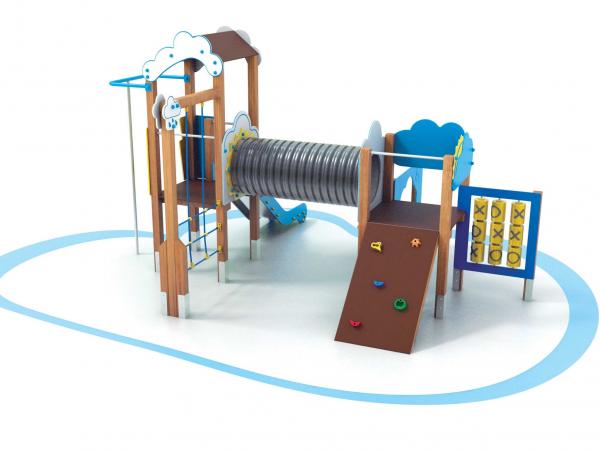 - Elle est dotée de plusieurs activités : 1 filet à grimper, 1 mur d'escalade, 1 oxo, 1 tablette marchande, 1 tunnel, 1 toboggan, 1 barre pompier, 1 barre pompier